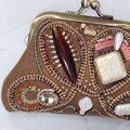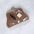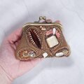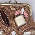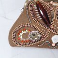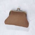 ビーズ刺繍の小さながま口 No.16|キャメル|ウール素材|マチなしポーチ|手刺繍|一点もの