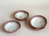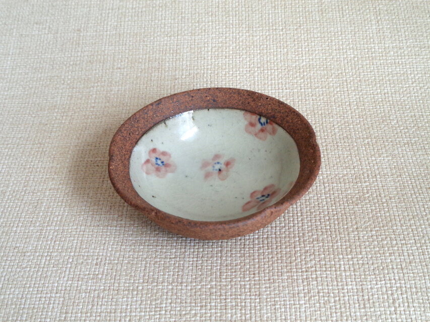 早春の陶房の庭に咲く紅梅を愛らしく描いた輪花小鉢です。