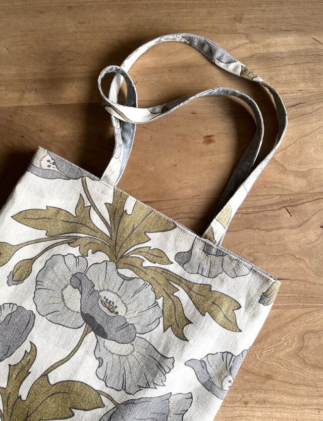 厚手のリネンにシックな色合いのポピーがプリントされています。