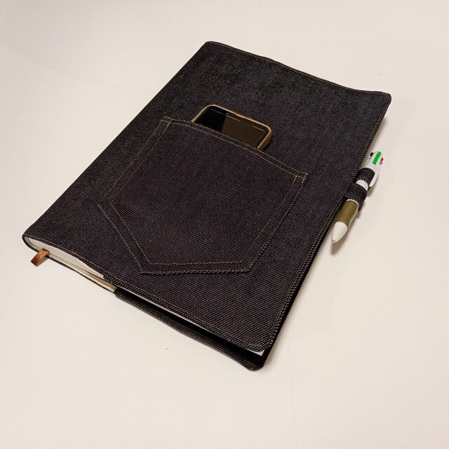 *TK⑥A4判手帳カバーデニム ペン差しポケット有