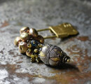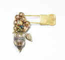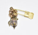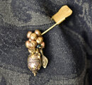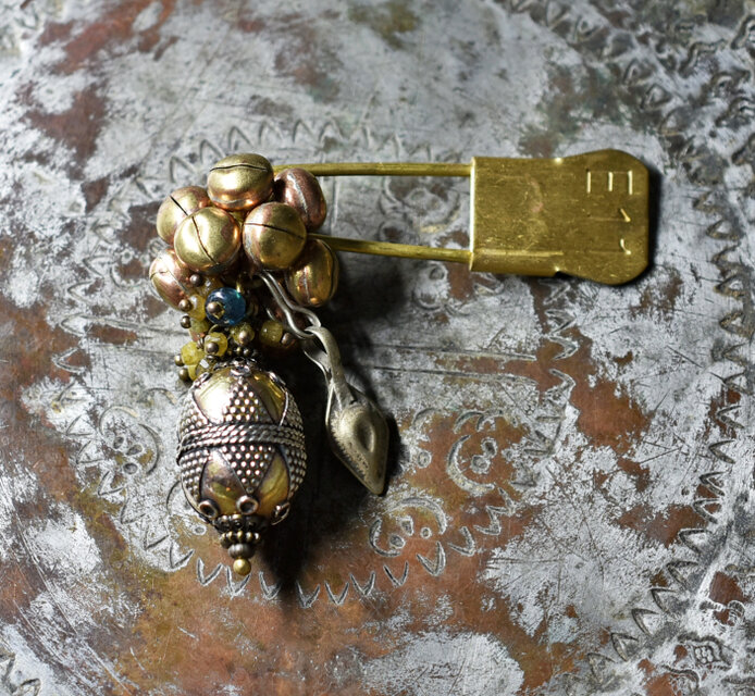 トルクメニスタン細工ビーズとたわわな鈴とトルマリン、アフガンパーツを繋いだランドリーピンブローチです。