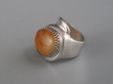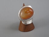 リングのサイズは14号、重さは26g、最大幅は30mm、手のひら側の幅は9mm、金属部分は純銀です。