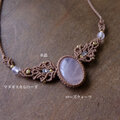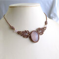 ローズクォーツ(ブラジル産)・マダガスカルローズ マクラメ編みチョーカー ネックレス 10月誕生石アクセサリー 3716