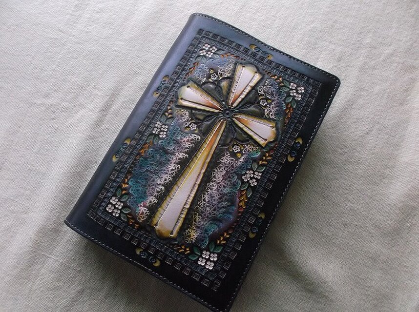 刻印配列や染色はさることながら、使い込むほどに、経年変化で艶が増しより使いやすくなることがほかの素材のブックカバーにはない最大の特徴だと思います。