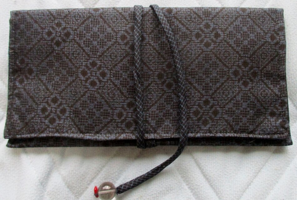 唐桟柄財布 写真より実際の方がいい感じですね、スマホ入れかな?ポーチ(巾着)も付いてて便利そう。和物はなんか落ち着いていいですね、縫製も丁寧で長く使えそうです。