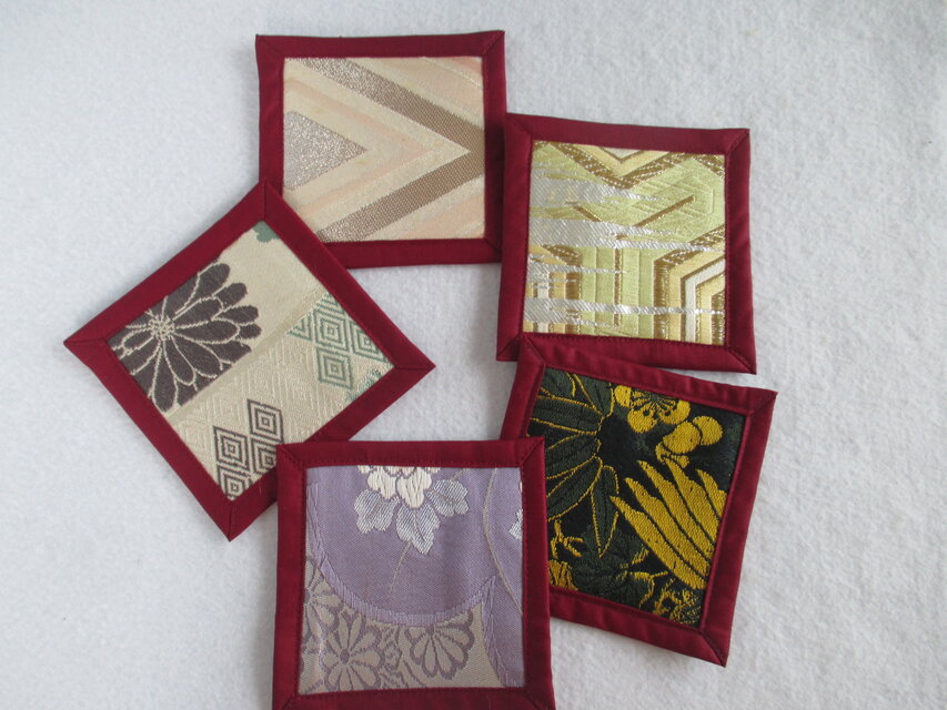 美しく 織り上げられた 5種類の帯を使った贅沢なコースターです。