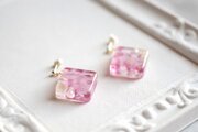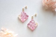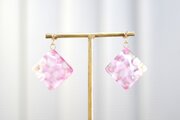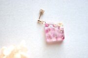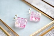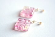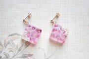 レジンアート スクエアピアス〈水紋・ピンク〉