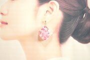 ホワイトとピンクが描く波紋がまるで水面のような、その透明感の美しさに魅入ってしまうピアス。