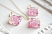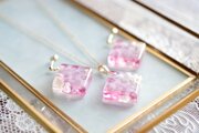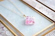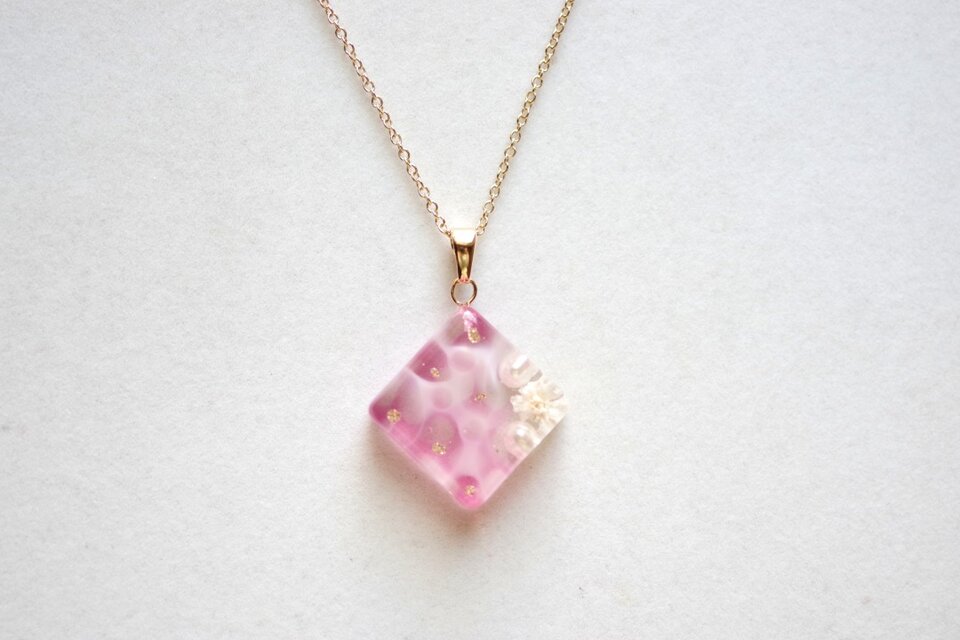 レジンアート スクエアペンダント〈水紋・ピンク〉