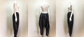 少し絞ったデザインになります。ウエストゴム入り、左右前ポケット有り。