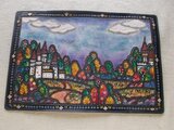 拭き染めとはベースになる色で一度染めた後、刻印の輪郭をテルテル坊主のような筆で適度にぼかす技法です。そうすることのより、アンティーク風になり暖かい印象を与えています。