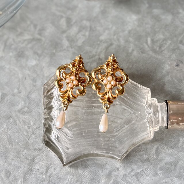 ヴィクトリア朝のデザインが特徴的なゴールドトーンピアス。