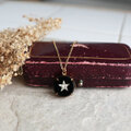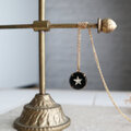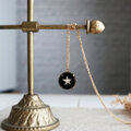 艶のあるジェットブラックの石の中央に、星型のラインストーンが埋め込まれたマッラウンドカボション。