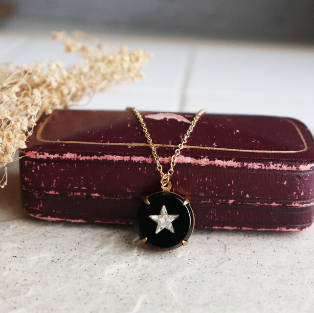 西ドイツ製ヴィンテージ!ブラックスターストーンのネックレス 金アレ対応