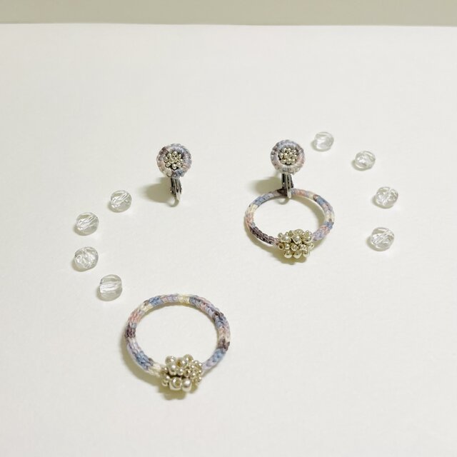 【付け外せるイヤリングo-raka】フランス刺繍糸 2way 金属アレルギー対応 シャボン玉