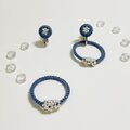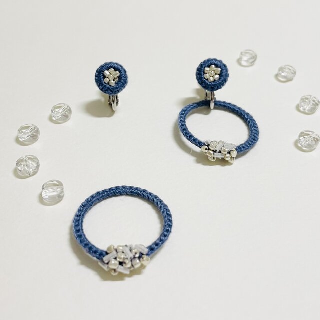 【付け外せるイヤリングo-raka】フランス刺繍糸 金属アレルギー対応 ブルー&シルバー 2way