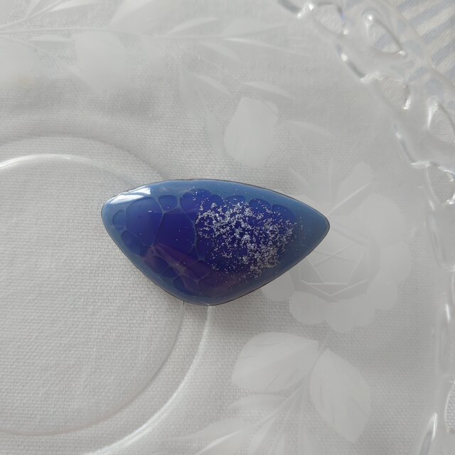 落ち着いたピンク色に夜空のような紺色と、2色が混ざった淡い紫色というニュアンスのある色合いが綺麗です。表面の細かい銀色も光り過ぎず上品ですね。個人的には星雲のような印象を受けました。素敵な作品をありがとうございます:)
