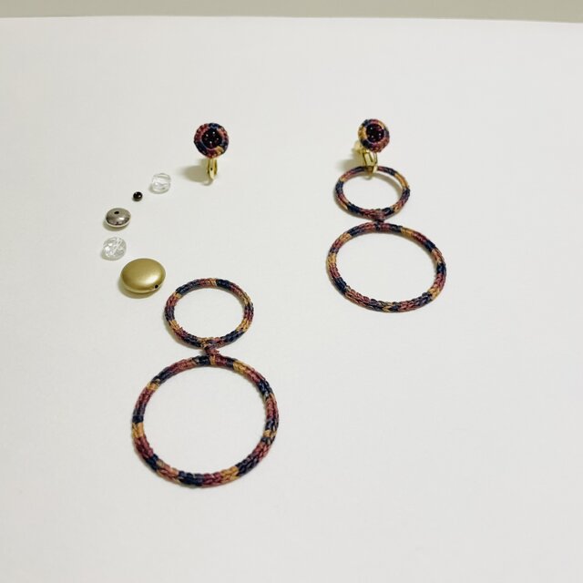 【2way】フランス刺繍糸のイヤリング 気分に合わせて2通りを愉しめるo-raka 金属アレルギー対応 天然石ガーネット
