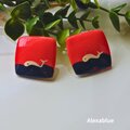 Antique Whale Art Earrings|スクエアシェイプ クジラが泳ぐ絵柄 アンティークイヤリング