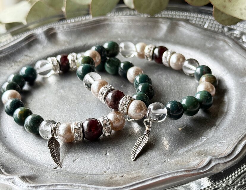 ・ブラッドストーン・ガーネット・水晶:約8mmラウンド