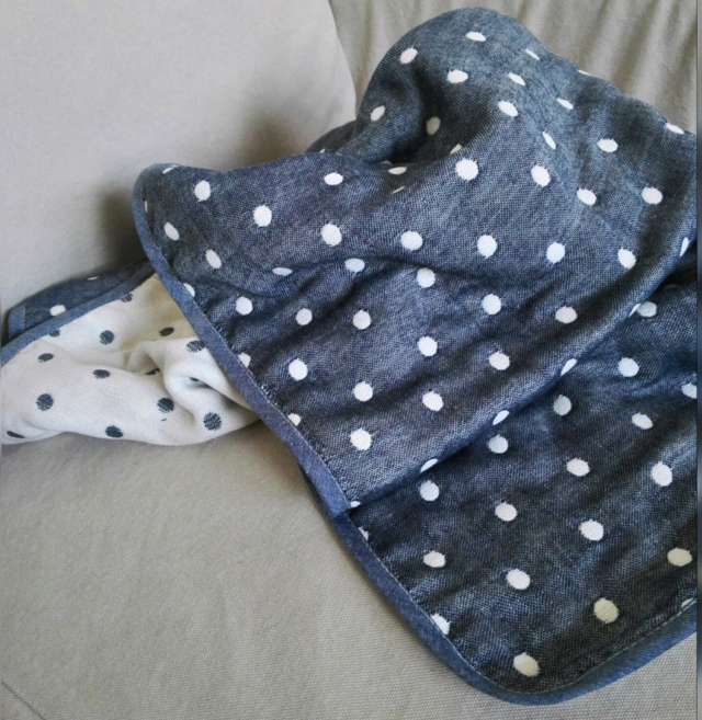 ネイビードット柄6重ガーゼのブランケット *72x106cm