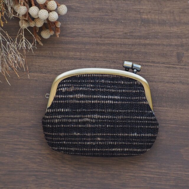 ■手紡ぎ、手織り生地の横ひねりがま口コインケース / e2■ panier(gmi-e2)