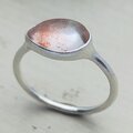 とても透明度が高く苺果肉のようなゲーサイトが漂う「勝利の女神」ストロベリークォーツの925リング*ペアシェイプカボション半分ほどにインクルージョンが見られます。僅かなクラックが見られますが総じて透明度の高いレアストーンをお楽しみ下さい*リングはアンティーク調マット仕上げ、10~16号(推奨サイズ)の範囲を目安に調整可能、サイズ確定後にマットな覆輪で石留め致します※通常、黒化遅延処理を施しますが銀そのものの変化をお好みの場合は処理不要とお申し付けください*黒化防止ロジウムなど各種コーティングをご希望の場合は承ります(オプション1000円)