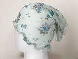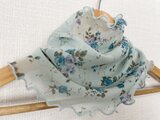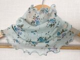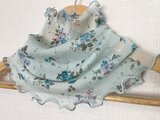 ブルーグリーン花柄レースシングルハンドメイドネックウォーマーショール、日焼け止め