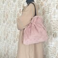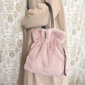 ■ふわふわラビットファーの巾着トートバッグ・ダスティピンク■ marron(rbtf-dstpk)