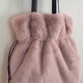 ふわふわのラビットファーでつくった巾着トートバッグです。