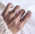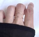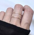 2つの華奢なリングがスペースを空けて指を彩るゴールドのリング。