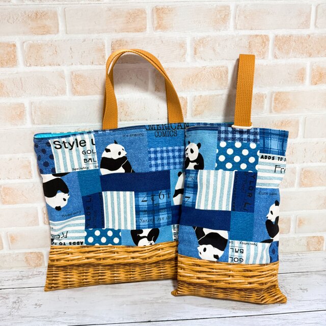 レッスンバッグ&シューズケース 2点セット 【パンダ★青】