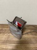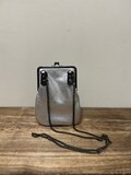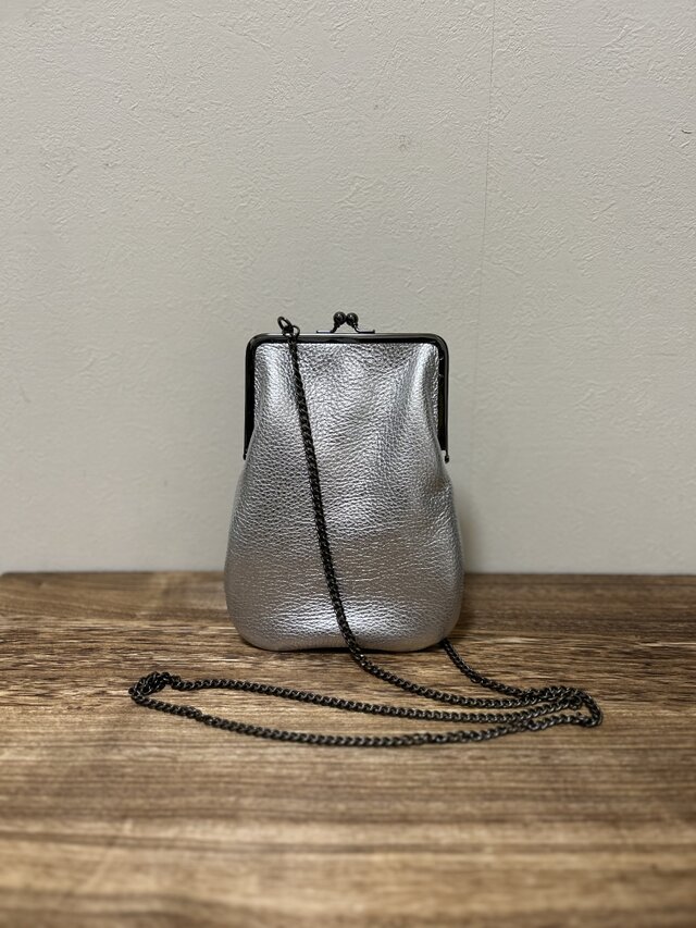 SHIMMERイタリアレザーがま口ポシェット◆シルバー サコッシュ スマホショルダー チェーンストラップ
