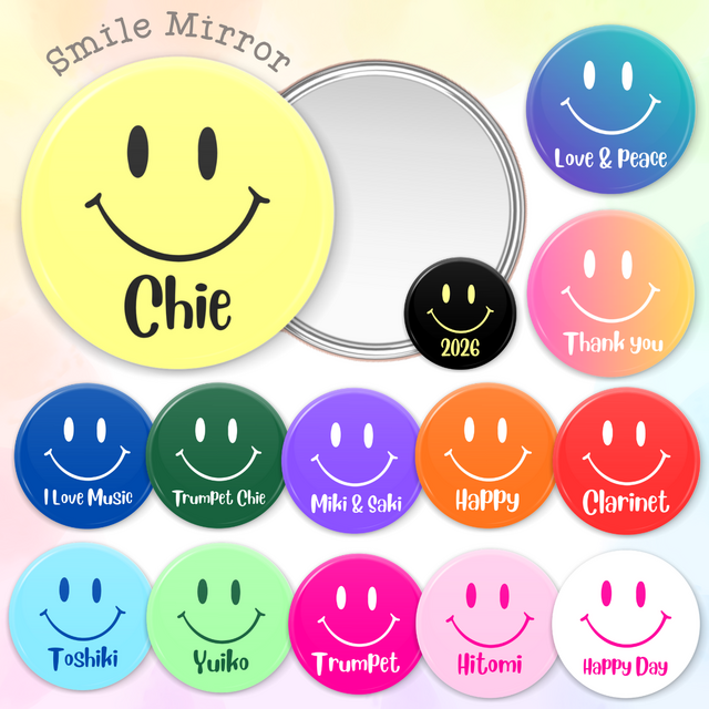 【カラフルスマイルの名入れミラー】ニコ 推し活 引き出物 席次 名前 楽器 吹奏楽 記念品 鏡