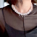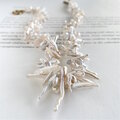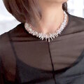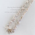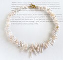 オーロラカラーに輝く細長いケシパールを、グラデーションに組んだチョーカー。