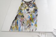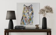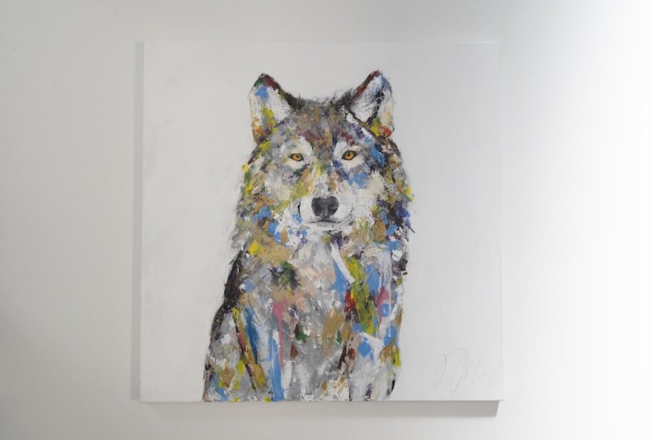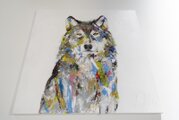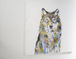 動物シリーズから狼の力強さ、存在感を沢山の色を使って制作したモダンアート スプレーアート作品。