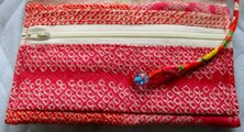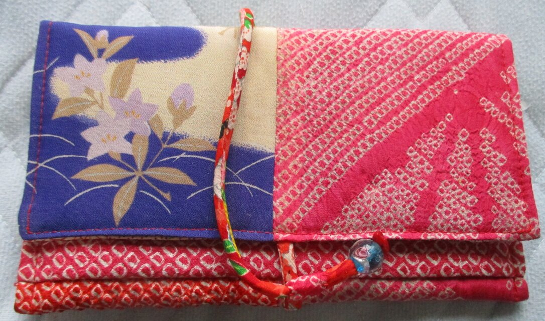 8570 絞りと花柄の着物で作った和風財布・ポーチ