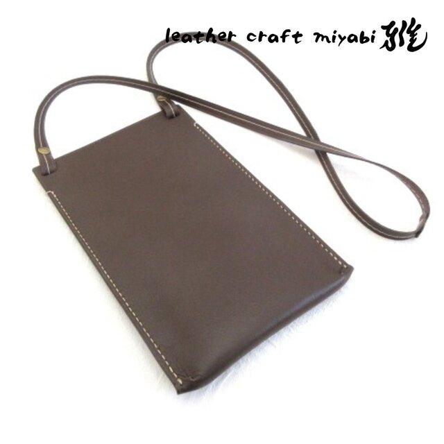 SALE開始~ 手縫い☆お洒落に収納♪《牛革》シンプル・スマホショルダー・ポーチ・フラットタイプ・ダークブラウン・071