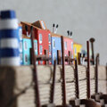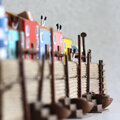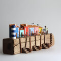 流木、ねじ・釘(赤錆加工)、ホワイトウッド(欧州スプルース、ドイツトウヒなど)、ステイン、ペンキ等で製作。ヤスリでダメージ感を演出しています。「潮騒とカモメの鳴き声、風の音」を感じていただければ幸いです。