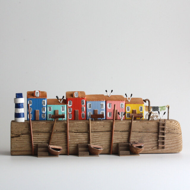 先ほど受け取りました。 流木の風合い、カモメ、岬の先にある白い壁の一軒家…ノスタルジーに誘われ.風や波音が静かに聴こえてきそうな雰囲気のある作品です。早速、リビングの棚に飾りました。 ありがとうございました!