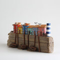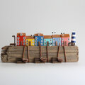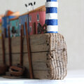 流木、ねじ・釘(赤錆加工)、ホワイトウッド(欧州スプルース、ドイツトウヒなど)、ステイン、ペンキ等で製作。ヤスリでダメージ感を演出しています。「潮騒とカモメの鳴き声、風の音」を感じていただければ幸いです。