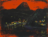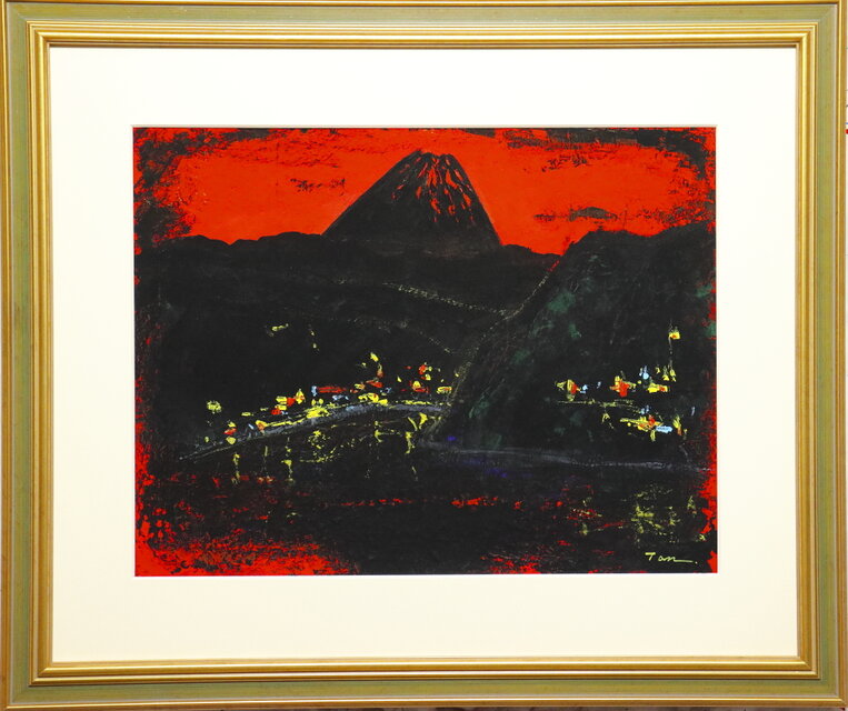 「黒富士」(NO.2530) 6号F ケント紙にアクリル絵の具 送料無料 安本太ん 画像をクリックすると全面画像になります