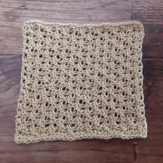 コットン100%の糸で編んだ、アフガン編みの模様編みのドイリーです。