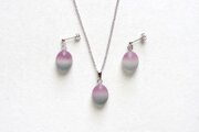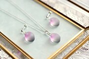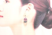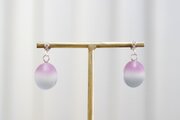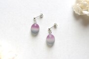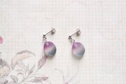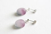 すりガラスのような柔らかな風合いと、そこからほのかに覗く落ち着いたグレーと紫が美しいピアス。