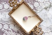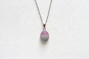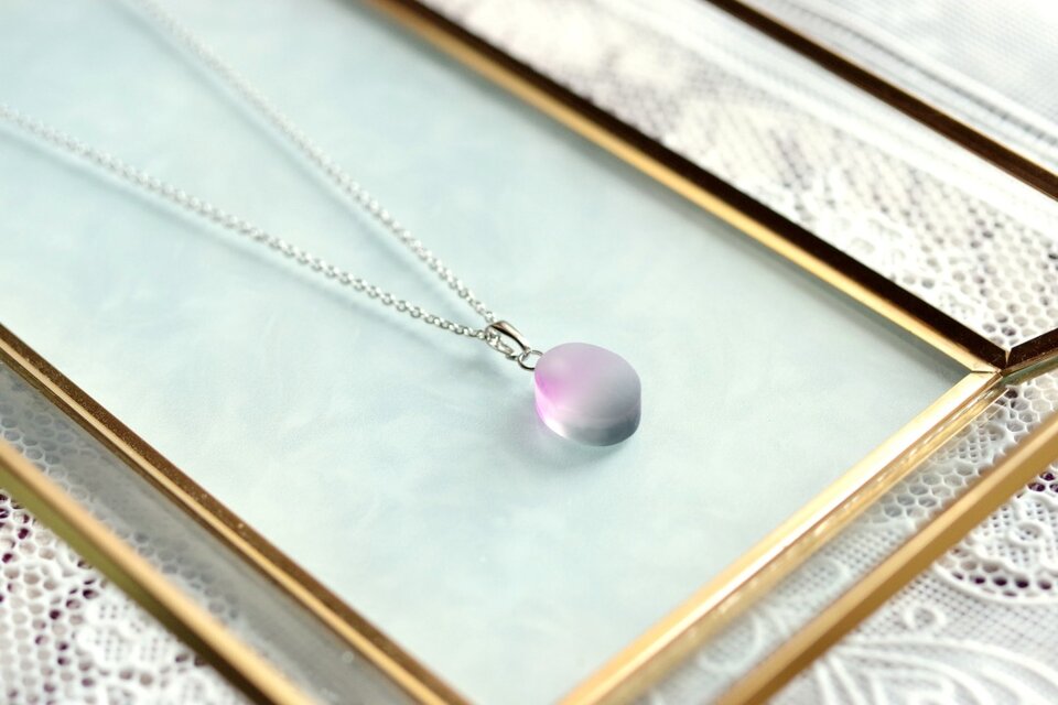すりガラスのような柔らかな風合いと、そこからほのかに覗く落ち着いたグレーと紫が美しいペンダント。