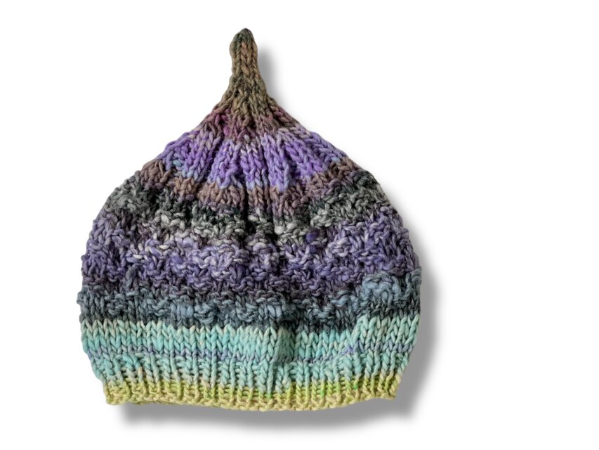 1点限定! 新作2026どんぐりニット帽子 野呂英作毛糸使用 パープルグレーグラデーション 誕生日ギフト・プチギフト