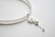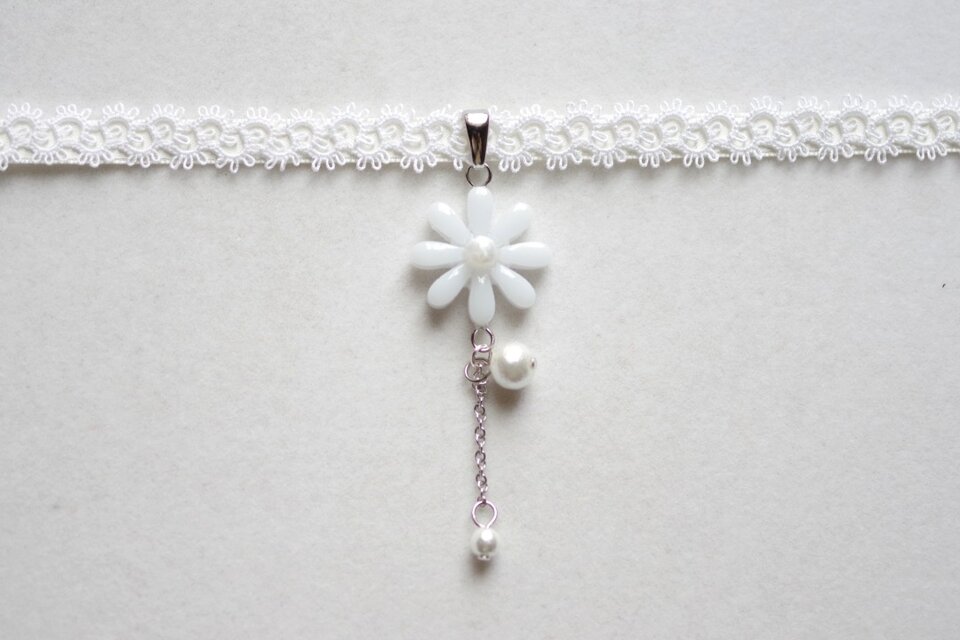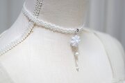中心の花芯とコットンパールの光沢のある輝きが上品なチョーカー。