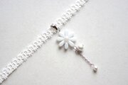 揺れるコットンパールは愛らしく、白のレースとリボンが清楚な印象を与えます。