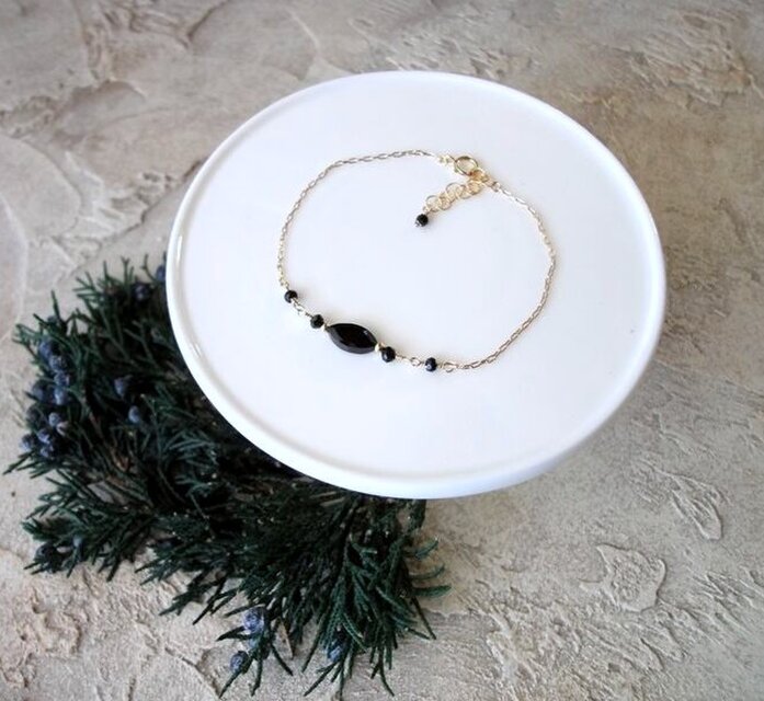 天然石のチェーンブレスレット ■ God's Rice ■ 14KGF ブラックスピネル