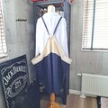 リネン×ネイビーの切替デザインエプロンが出来上がりました。